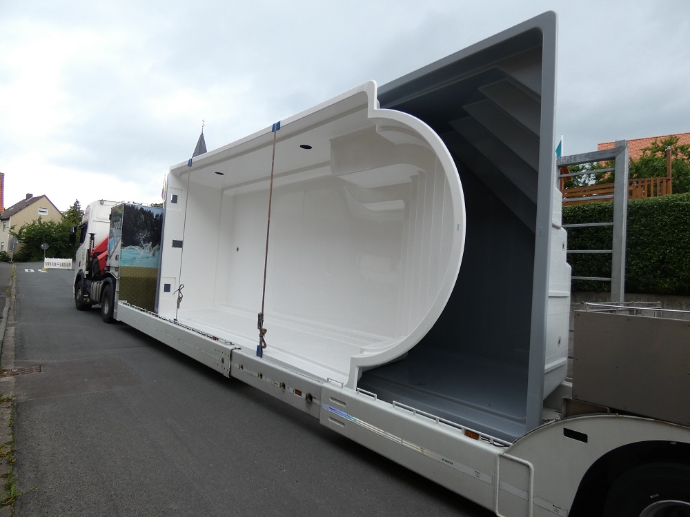 Beim Neubau des Fertigbeckens wurde die Anlieferung erfolgreich abgeschlossen.